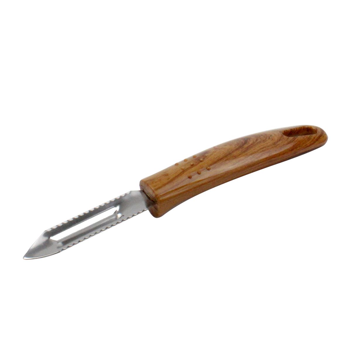 Комплект кухненски прибори ЕК-6672 от 8 части, изработени от висококачествена неръждаема стомана. Включва отварачка за консерви, нож за пица, ситно ренде, лопатка за нарязване, нож за белене, цедка за чай, прибор за наточване на ножове и стойка/органайзер с височина 32 см.