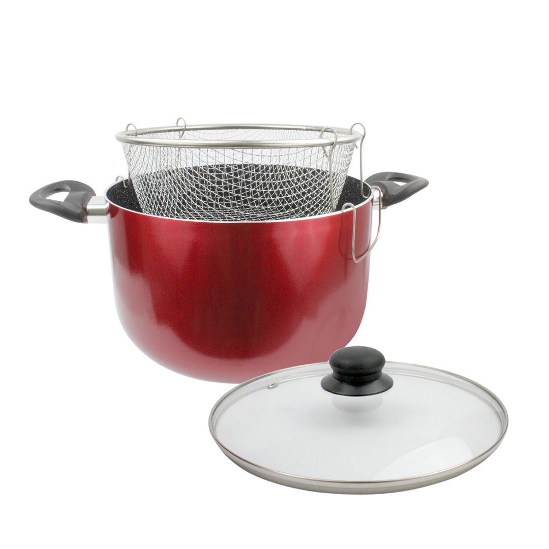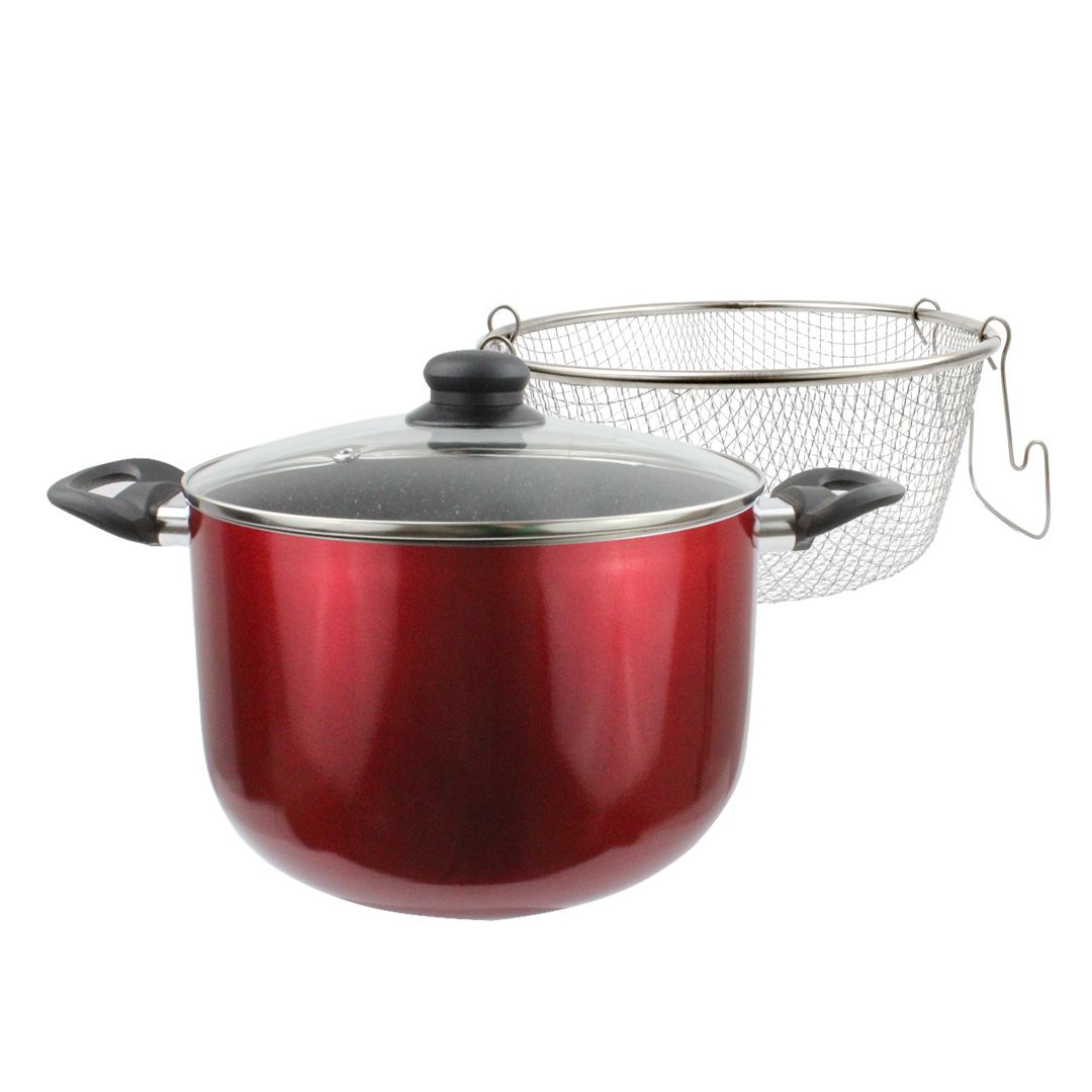 Дълбока тенджера за готвене и пържене ЕК-145 R, Кошница за пържене, Незалепващо мраморно покритие