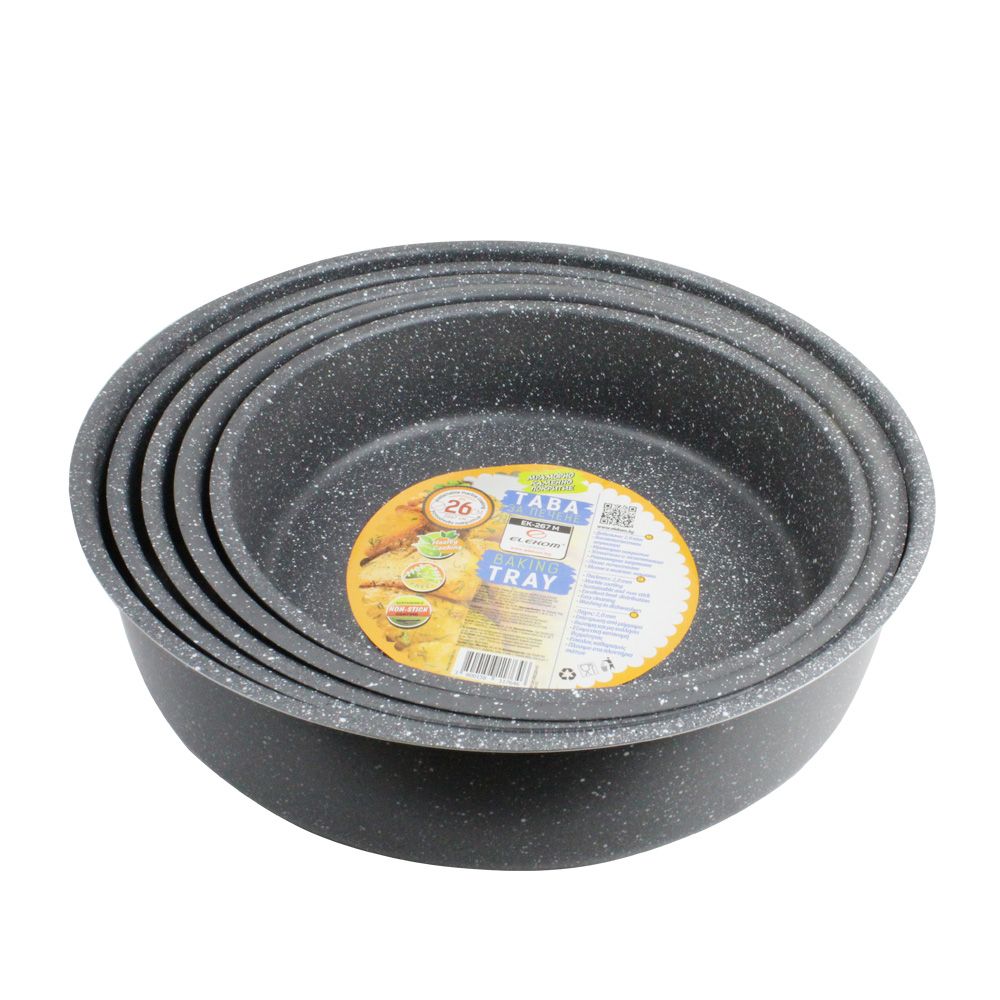Открийте перфектния комплект тави за вашата кухня с Комплект тави 267M+288M+308M+328M+349M. Изработени от висококачествен алуминий с мраморно каменно покритие, тези тави предлагат изключителна устойчивост и незалепващи свойства. С дебелина от 1.6 mm и размери 26 x 7 см, 28 х 8 см, 30 х 8 см, 32 x 8 см и 34 х 9 см, те осигуряват равномерно загряване за перфектни резултати всеки път. Подходящи за измиване в миялни машини и без съдържание на PTFE, PFOA и тежки метали, тези тави са безопасни и лесни за поддръжка. Изберете качество и удобство за вашата кухня с нашия комплект тави.