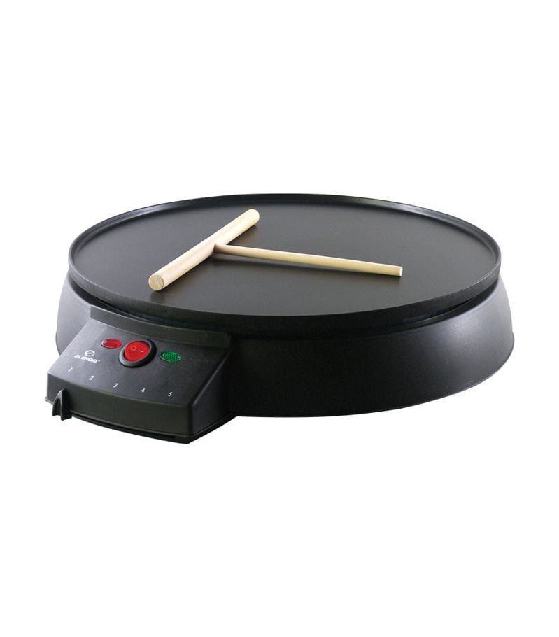 Уред за палачинки ЕК-006, 900 W, 285 mm, 230°C • за приготвяне на вкусни палачинки у дома! С незалепваща плоча с диаметър 285 мм и терморегулатор с 5 степени на нагряване, този уред осигурява перфектни резултати всеки път. Работната температура варира от 165 до 230°C, а включената дървена пръчка за разстилане на сместа прави процеса още по-лесен. Двойният светлинен индикатор и гумираните крачета за стабилна стойка гарантират безопасност и удобство. Лесен за употреба и почистване, този уред работи на захранване 220V/50Hz и има мощност от 900 W. Компактните размери на опаковката (35x10x37 cm) го правят идеален за всяка кухня.