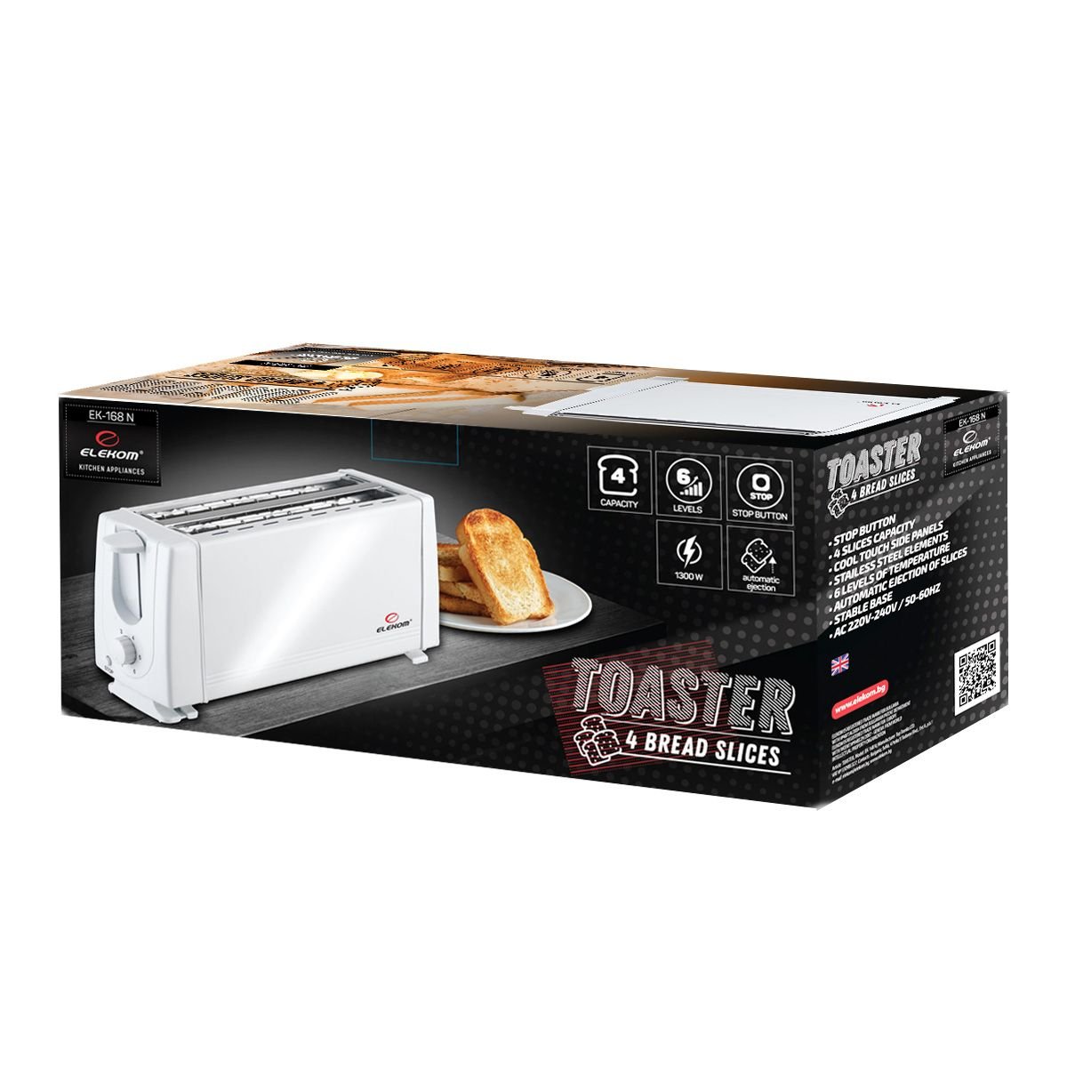 Практичен и стилен двоен тостер за 4 филии, подходящ за всяка кухня. С него лесно ще приготвяте вкусни и равномерно препечени филии за цялото семейство.