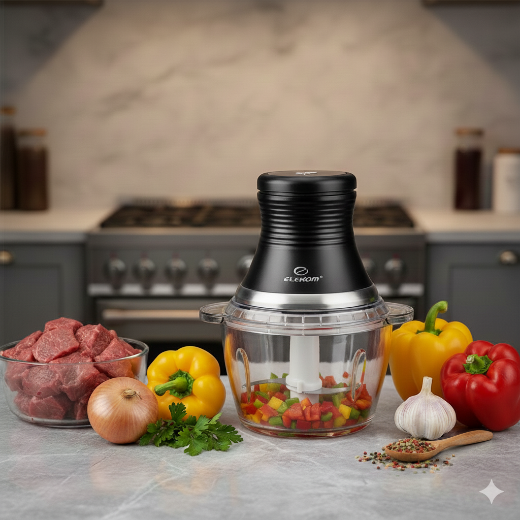 Надежден чопър с 1.8 литрова стъклена купа, идеален за всяка кухня. Оборудван с остриета от неръждаема стомана и две режещи остриета за бързо и ефективно кълцане. Лесен за употреба с push бутон и удобен за почистване. Мощност 400W.