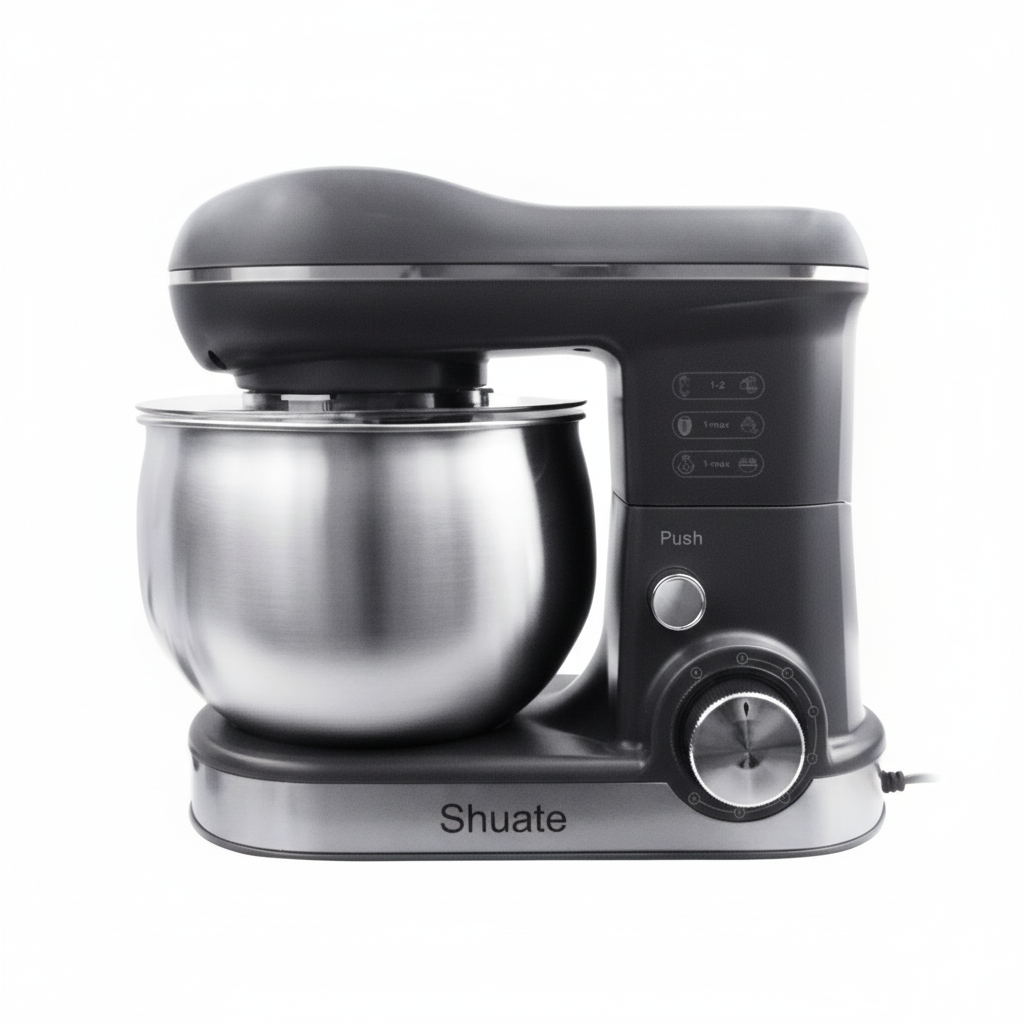 Планетарен миксер SU-216S помощник за всяка кухня! С купа от неръждаема стомана с капацитет 5 литра и защитен капак против пръскане, този миксер е перфектен за смесване, разбиване на яйца и месене на тесто. Снабден с бъркалки за различни нужди и кука за тесто, той предлага лесно почистване и стабилност благодарение на неплъзгащите се крачета. Разглобяемите части улесняват поддръжката, а 6-те режима на работа и функцията Турбо осигуряват максимална гъвкавост. С мощност от 1000 W, Планетарен миксер SU-216S е вашият надежден партньор в кухнята.