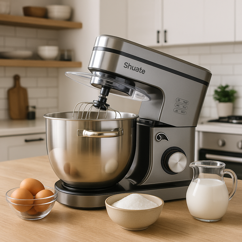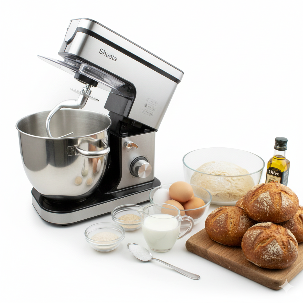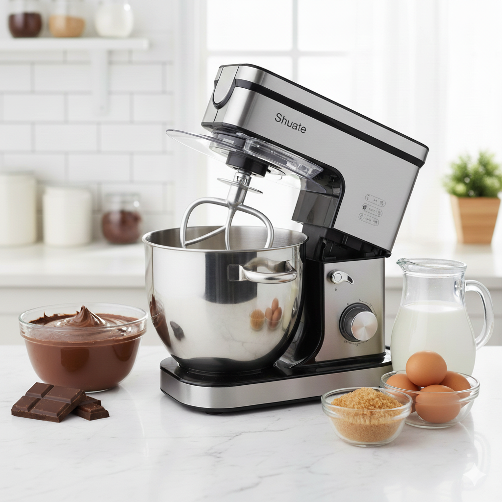 Планетарен миксер SU-212E помощник за всяка кухня! С купа от неръждаема стомана с капацитет 10 литра и защитен капак против пръскане, този миксер е перфектен за смесване, разбиване на яйца и месене на тесто. Снабден с бъркалки за различни нужди и кука за тесто, той предлага лесно почистване и стабилност благодарение на неплъзгащите се крачета. Разглобяемите части улесняват поддръжката, а 6-те режима на работа и функцията Турбо осигуряват максимална гъвкавост. С мощност от 2000 W, Планетарен миксер SU-212E е вашият надежден партньор в кухнята.