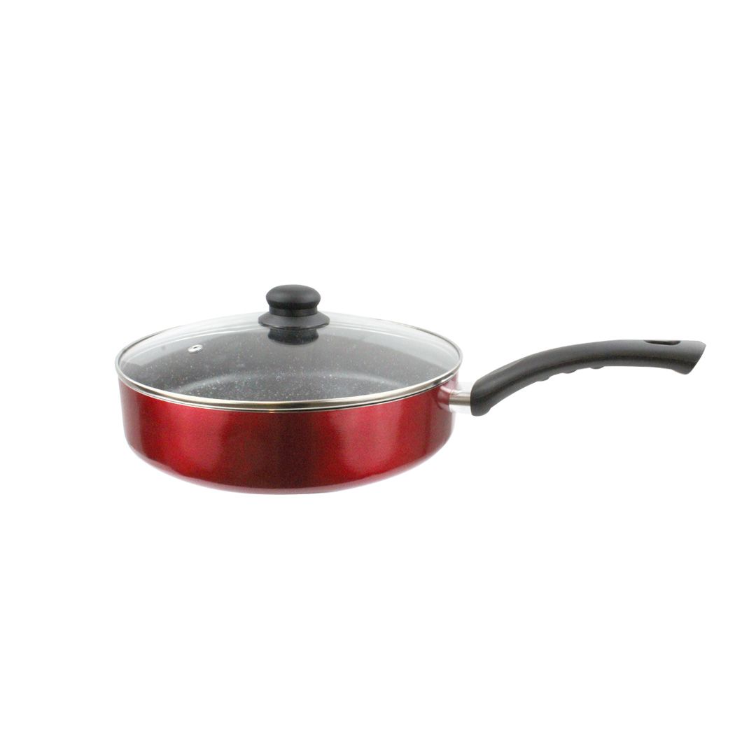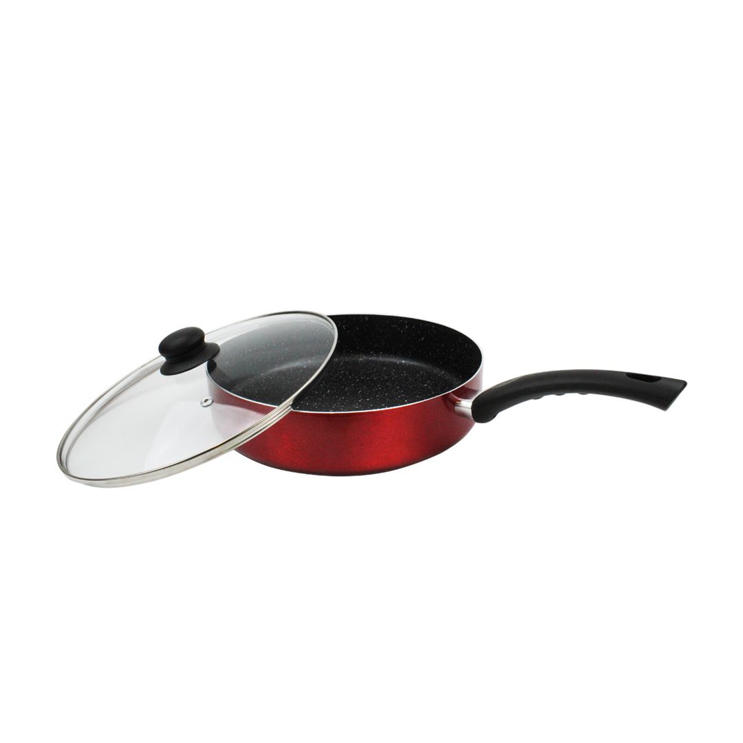 Дълбок тиган със стъклен капак ЕK-266R, Мраморно незалепващо покритие, 26 см