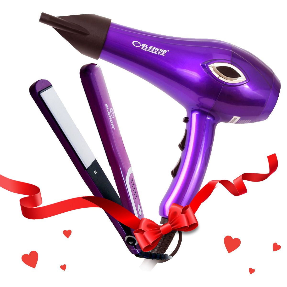 Представяме ви комплект за коса, включващ Сешоар EK-6600 и Преса за коса EK-1161, идеални за постигане на професионални резултати в домашни условия.