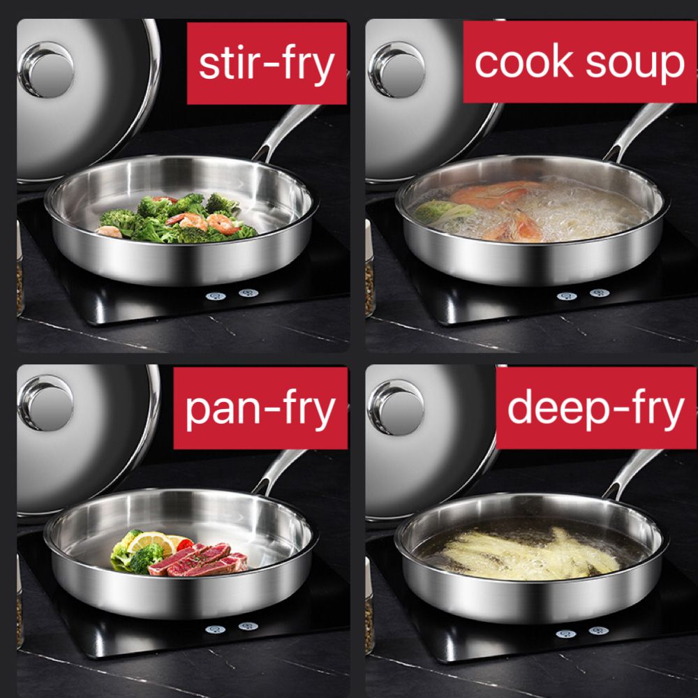 Този тиган със стъклен капак е създаден за ефективно готвене. Изработен от 5-слойна стомана с дебелина 4,0 мм, той осигурява бързо и равномерно разпределение на топлината, както и дълготрайна устойчивост. Специалното индукционно дъно гарантира съвместимост с всички видове котлони.